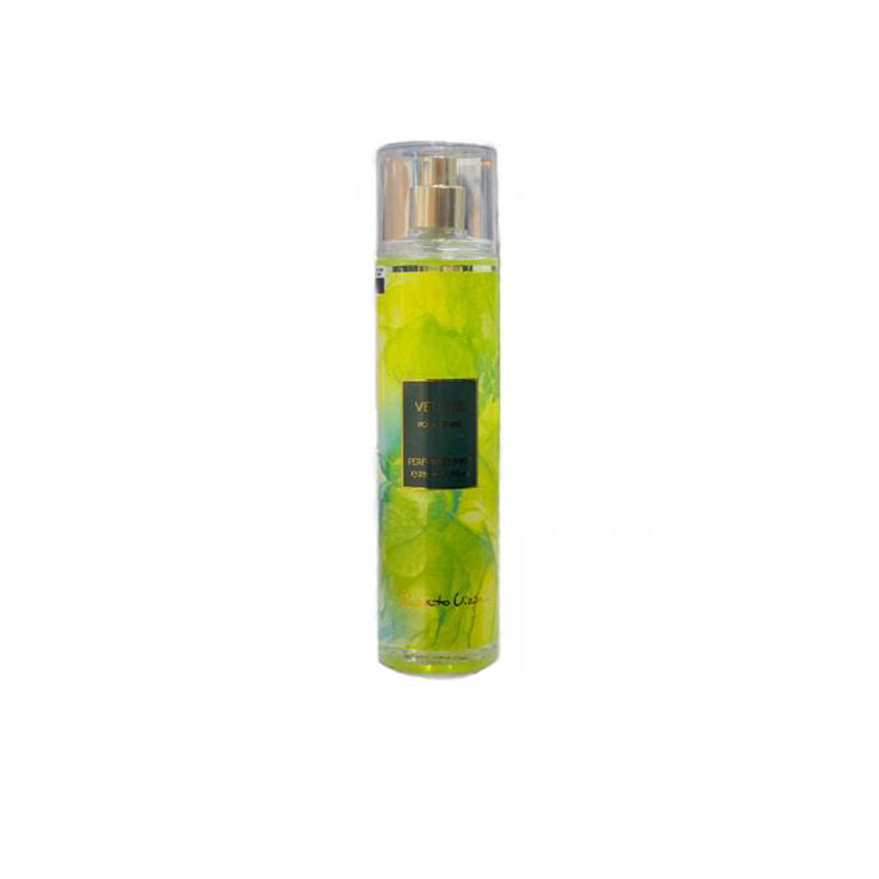 بادی اسپلش روبرتو ویزاری مدل وتیوربادی پرفیوم روبرتو ویزاری یک بادی اسپلش خوب و با رایحه های بسیار شاد و حرفه ای است که بسیار کاربردی برای استفاده روزانه که شما برای استفاده شخصی میتوانید استفاده کنید .این بادی اسپلش رایحه بسیار خوبی به بدن می دهد و ماندگاری بالایی روی پوست بدن دارد .این مدل از بادی اسپلش روبرتو ویزاری vetiver می باشد که رایحه ای ترش و تازه دارد که یکی از خفن ترین بادی اسپلش هایی است که این برند دارد و بسیار نوت بویی دل پذیری دارد که برای همه خانم ها با هر سلیقه ای عالی می باشد .